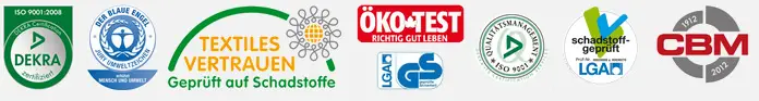 Al onze matrassen zijn ISO & TUV gecertificeerd. Diverse matrassen bezitten nog andere certificaten zoals der blauwe engel, Brandvertragend,